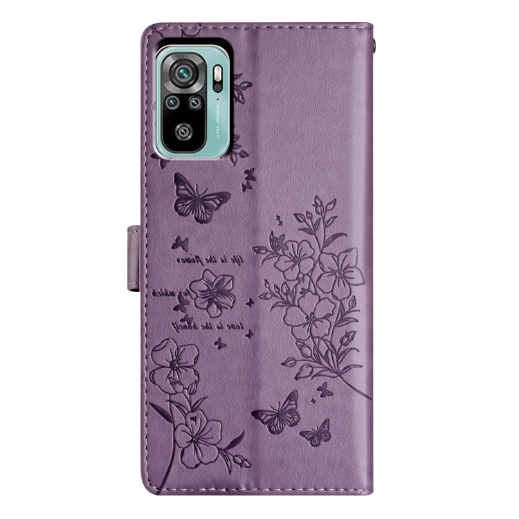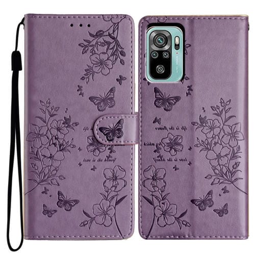 Para Redmi Note 10S Funda de Cuero para Teléfono con Mariposas y Flores (Púrpura)