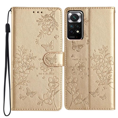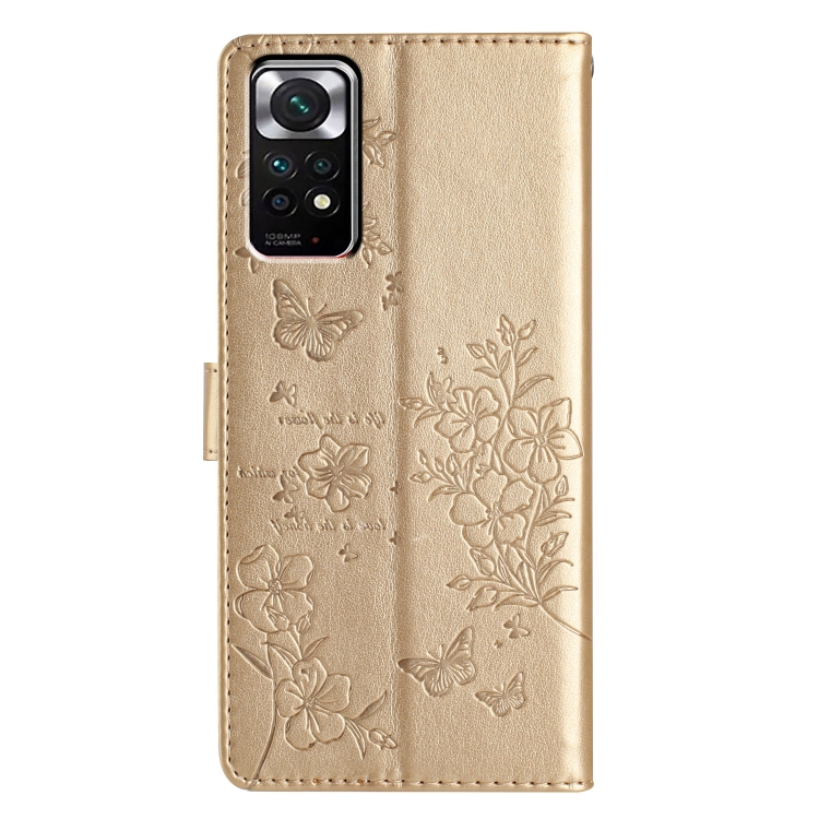 Para Redmi Note 11 4G Funda de Cuero para Teléfono con Mariposas y Flores Globales (Dorado)
