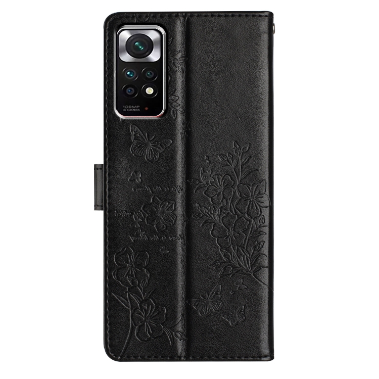 Para Redmi Note 11S 4G Funda de Cuero para Teléfono con Mariposas y Flores (Negro)