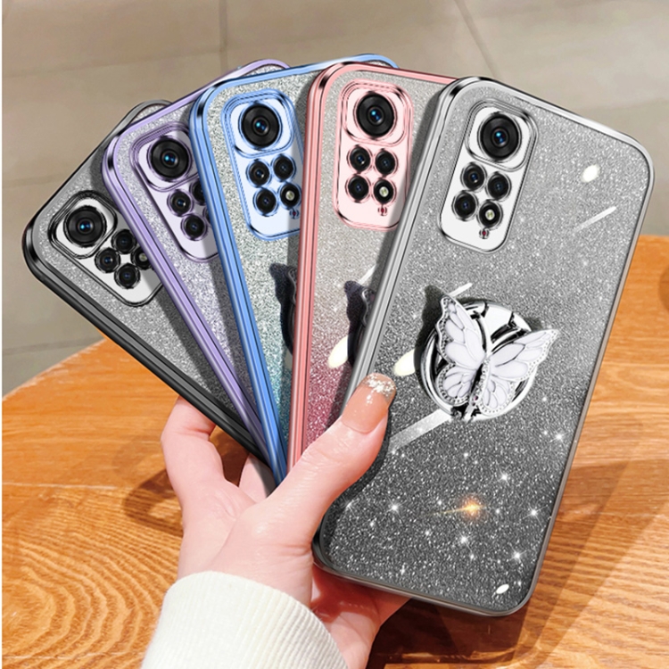 Para Redmi Note 11S Funda para Teléfono de TPU con Soporte de Mariposa con Brillo Degradado Plateado (Rosa)