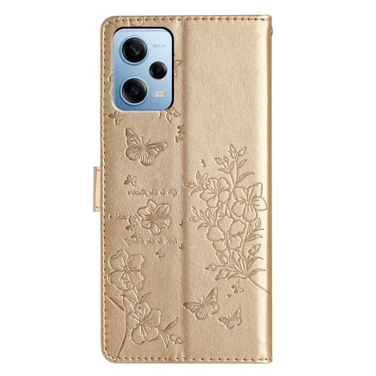 Para Redmi Note 12 4G Funda de Cuero para Teléfono con Mariposas y Flores Globales (Dorado)