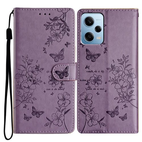 Para Redmi Note 12 4G Funda de Cuero para Teléfono con Mariposas y Flores Globales (Púrpura)