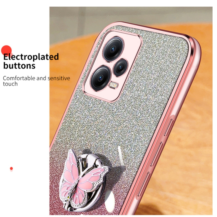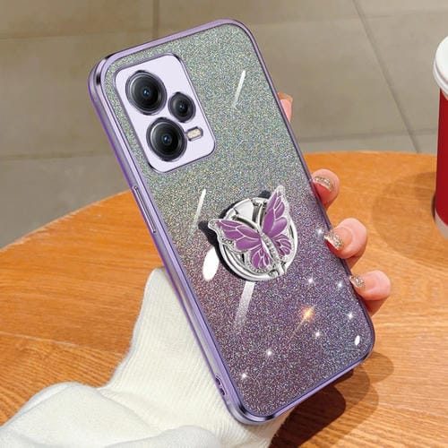 Para Redmi Note 12 5G Funda para Teléfono de TPU con Soporte de Mariposa con Brillo Degradado Global Plateado (Púrpura)