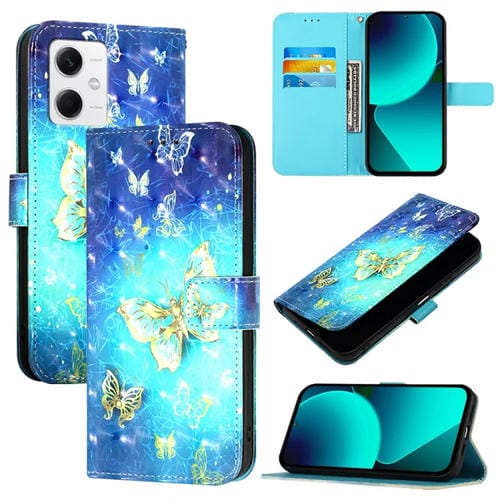 Para Redmi Note 12 5G Global / Xiaomi Poco X5 Funda para Teléfono de Cuero con Tapa Horizontal con Pintura 3D (Mariposa Dorada)