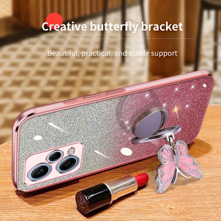 Para Redmi Note 12 Pro 5G Funda para Teléfono de TPU con Soporte de Mariposa con Brillo Degradado Plateado Global (Rosa)