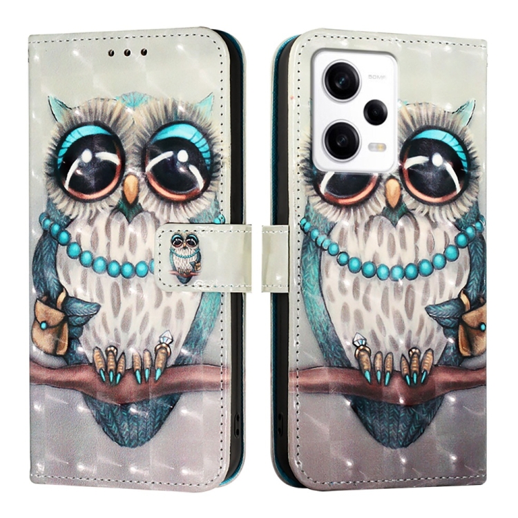 Para Redmi Note 12 Pro Speed 3D Painting Funda de Cuero con Tapa Horizontal para Teléfono (Búho Gris)