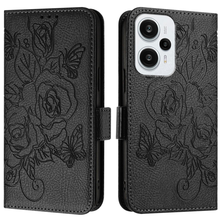 Para Redmi Note 12 Turbo 5G / Xiaomi Poco F5 Funda para Teléfono de Cuero Antirrobo Rfid con Relieve Rosa (Negro)
