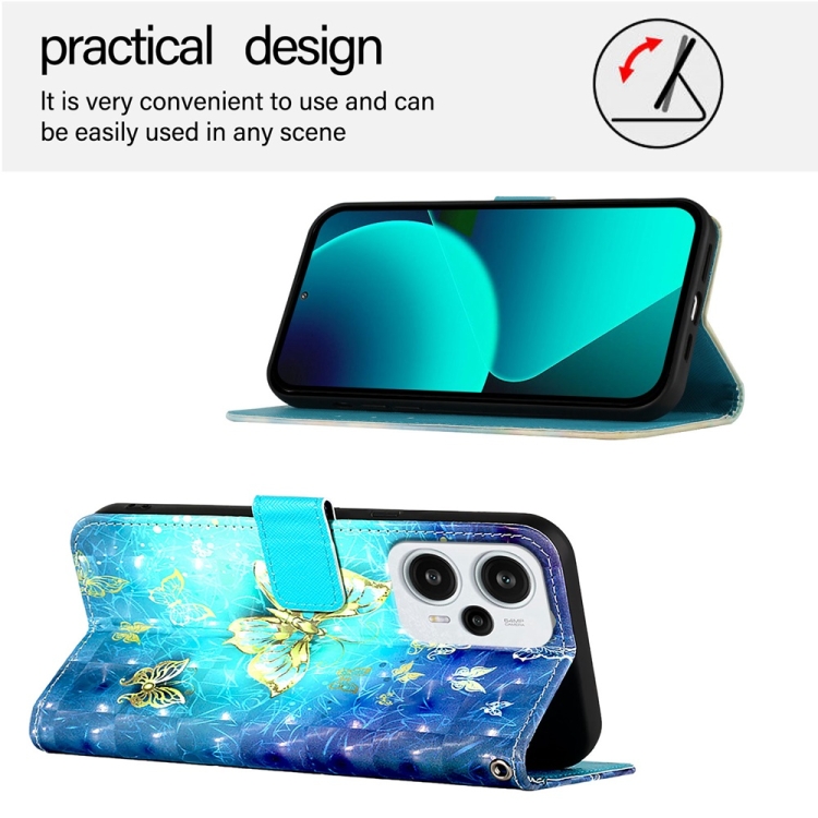 Para Redmi Note 12 Turbo / Xiaomi Poco F5 Funda para Teléfono de Cuero con Tapa Horizontal con Pintura 3D (Mariposa Dorada)