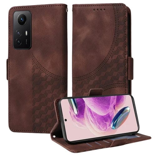 Para Redmi Note 12S 4G Funda para Teléfono de Cuero Estrellado con Rombo En Relieve Global (Marrón)