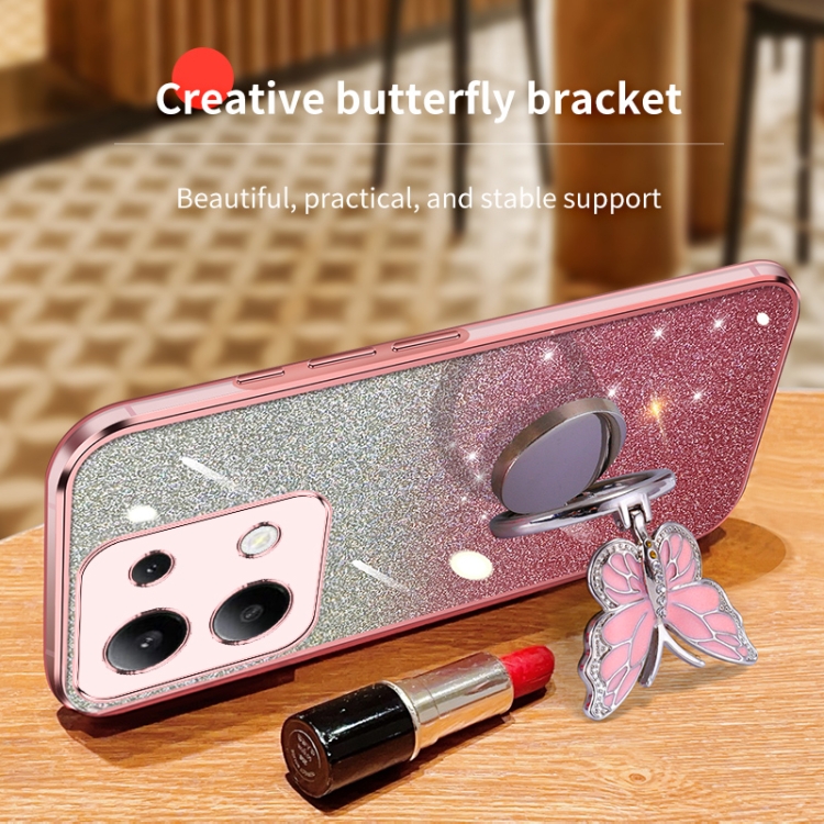 Para Redmi Note 13 4G Funda para Teléfono de TPU con Soporte de Mariposa con Brillo Degradado Plateado (Azul Sierra)
