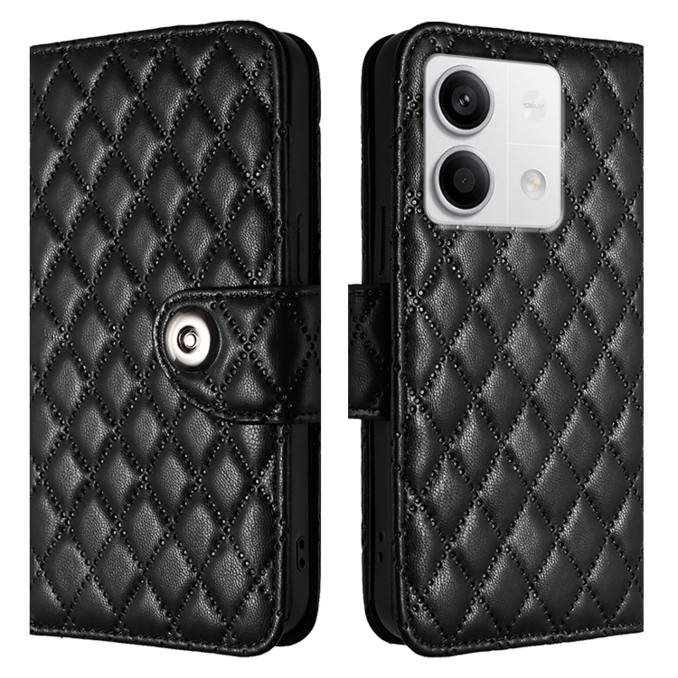 Para Redmi Note 13 5G Funda para Teléfono de Cuero con Tapa con Textura Rómbica Global y Cordón (Negro)