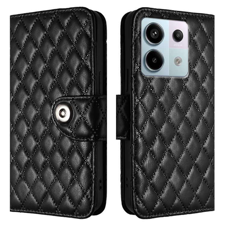 Para Redmi Note 13 Pro 5G Funda de Cuero con Tapa para Teléfono con Textura Rómbica Global y Cordón (Negro)