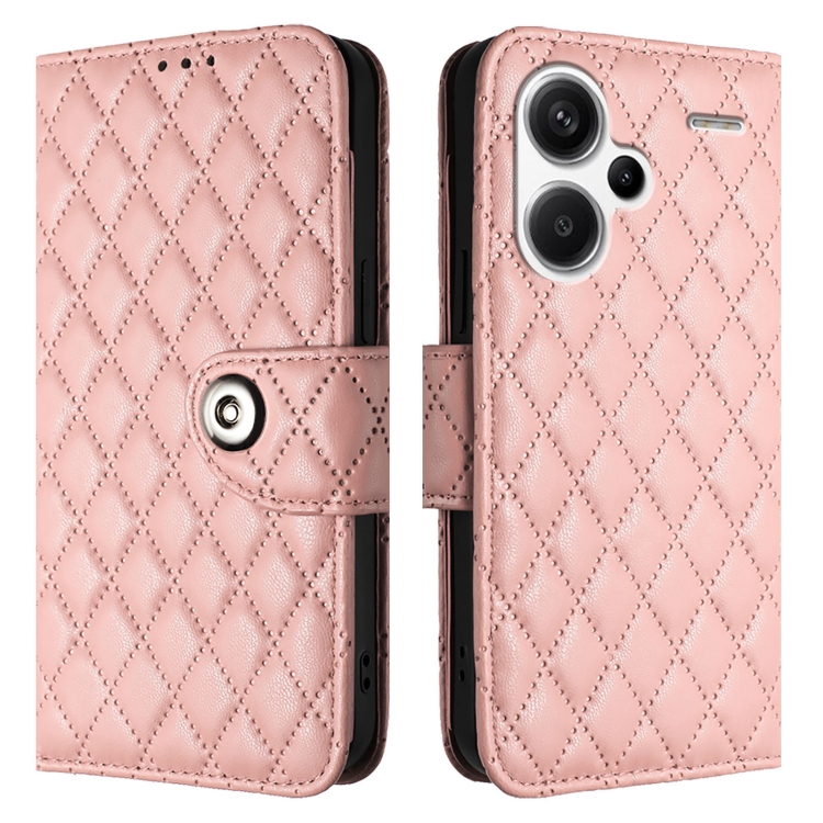 Para Redmi Note 13 Pro + Funda de Cuero con Tapa para Teléfono con Textura Rómbica Global y Cordón (Rosa Coral)