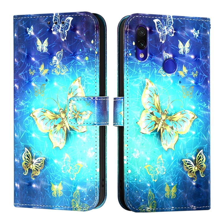 Para Redmi Note 7 / Note 7 Pro / Note 7S Funda para Teléfono de Cuero con Tapa Horizontal con Pintura 3D (Mariposa Dorada)