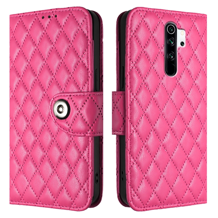 Para Redmi Note 8 Funda de Cuero con Tapa con Textura Rómbica y Cordón (Rojo Rosa)