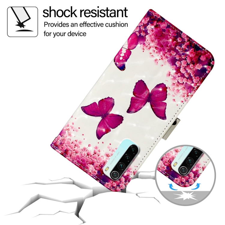 Para Redmi Note 8 Funda de Teléfono de Cuero con Tapa Horizontal con Pintura 3D (Mariposa Rosa)