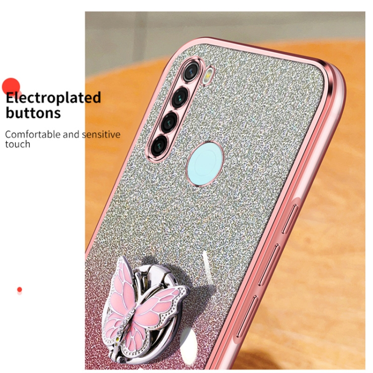 Para Redmi Note 8 Funda para Teléfono de TPU con Soporte de Mariposa con Brillo Degradado Plateado (Azul Sierra)
