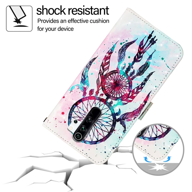 Para Redmi Note 8 Pro Funda de Teléfono de Cuero con Tapa Horizontal con Pintura 3D (Campanas de Viento con Forma de Gota de Color)