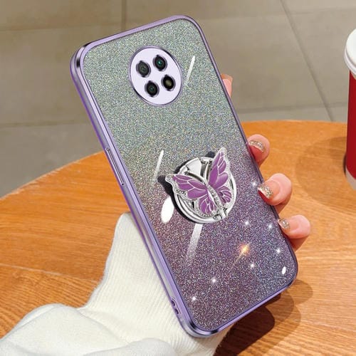 Para Redmi Note 9 5G Funda para Teléfono de TPU con Soporte de Mariposa con Brillo Degradado Plateado (Púrpura)