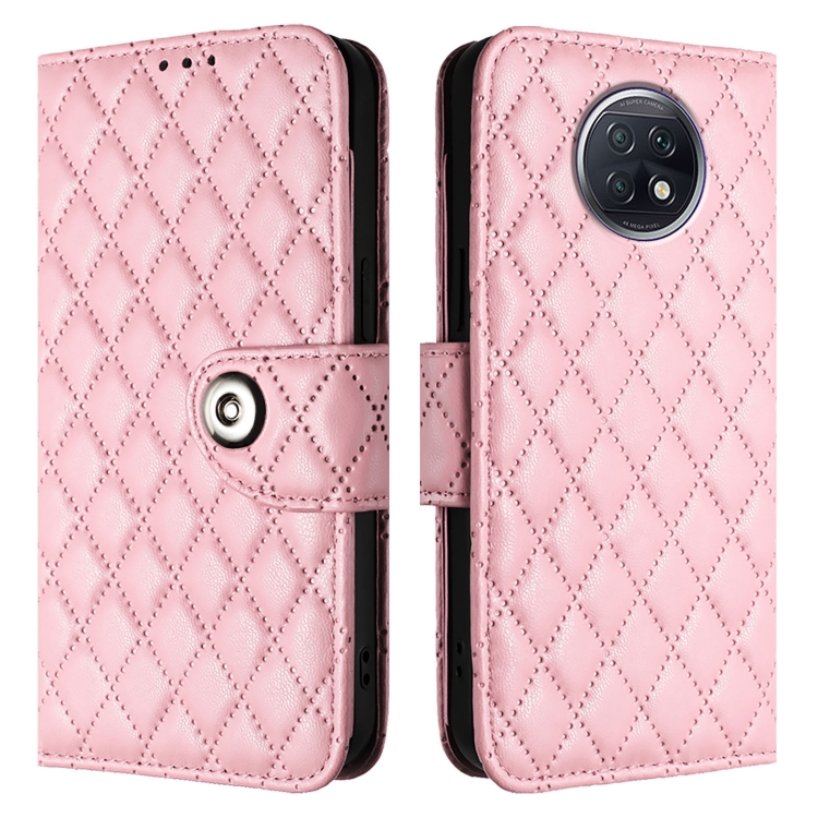 Para Redmi Note 9T Funda de Cuero con Tapa para Teléfono con Textura Rómbica Global y Cordón (Rosa)