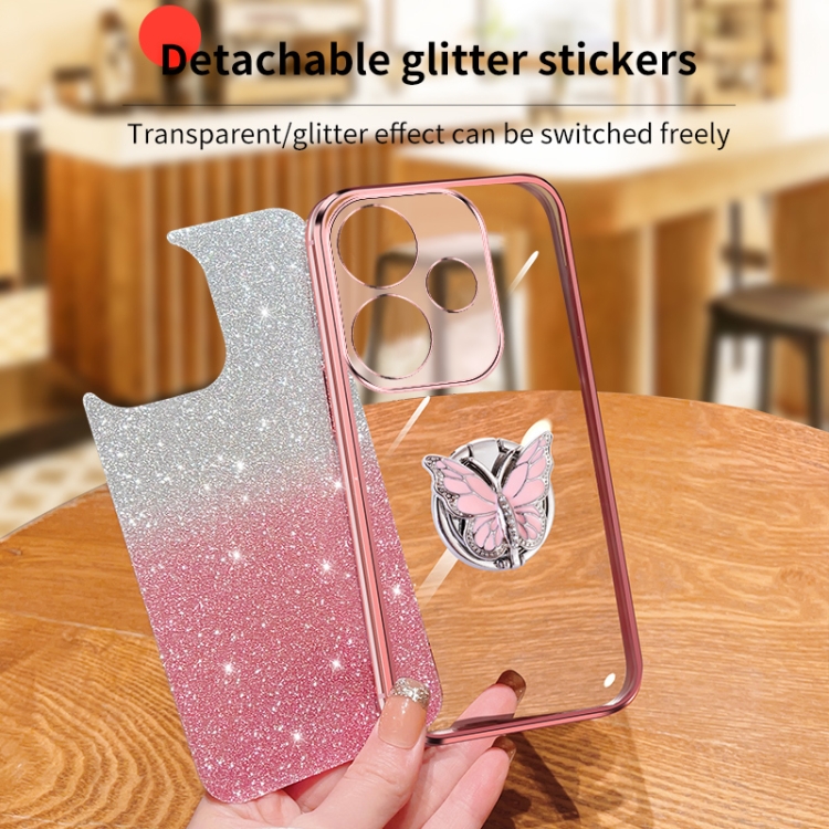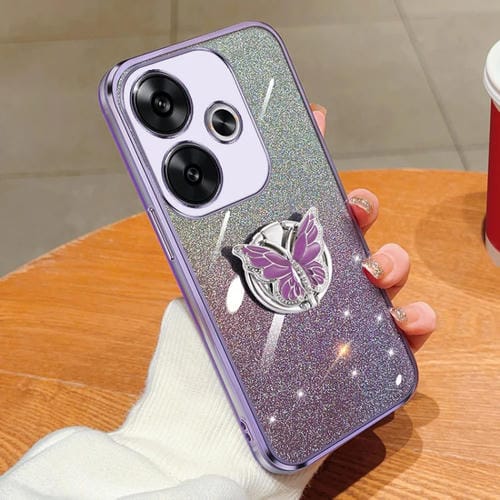 Para Redmi Turbo 3 Funda para Teléfono de TPU con Soporte de Mariposa con Brillo Degradado Plateado (Púrpura)