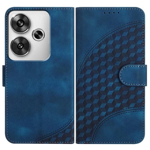 Para Redmi Turbo 3 / Xiaomi Poco F6 Yx0060 Funda de Cuero para Teléfono con Relieve y Cabeza de Elefante con Cordón (Azul Real)