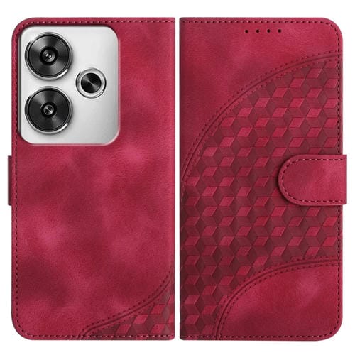 Para Redmi Turbo 3 / Xiaomi Poco F6 Yx0060 Funda de Cuero para Teléfono con Relieve y Cabeza de Elefante con Cordón (Rojo Rosa)