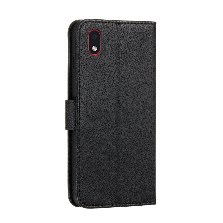 Funda de Cuero para Samsung Galaxy A01 Core con Tapa Horizontal, Billetera, Soporte y Ranuras para Tarjetas (Negro)