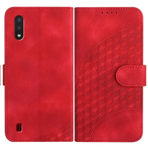 Funda de Cuero Samsung Galaxy A01 M01 Yx0060 con Relieve y Cabeza de Elefante con Cordón (Rojo)