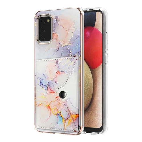 Estuche para Teléfono Samsung Galaxy A02S Versión Estadounidense con Ranura para Tarjeta IMD Patrón Mármol (Blanco)