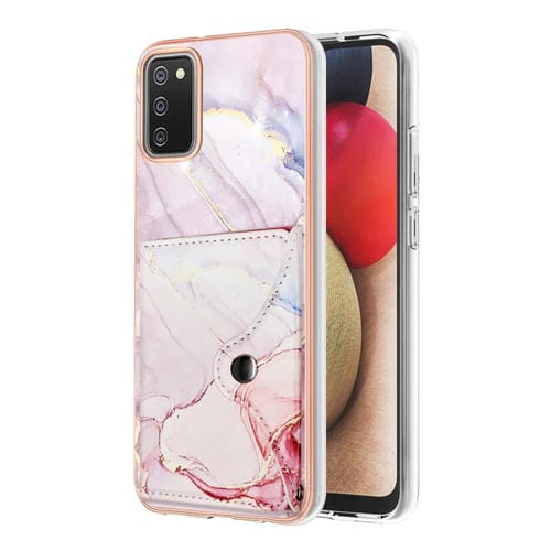 Estuche para Teléfono Samsung Galaxy A02S Versión UE con Ranura para Tarjeta Imd y Patrón de Mármol (Oro Rosa)
