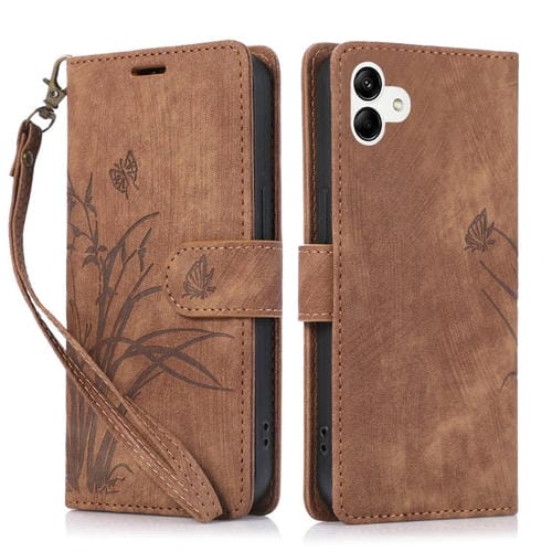 Funda para Teléfono Samsung Galaxy A04 A04S Cuero Relieve Mariposa Orquídea (Marrón)