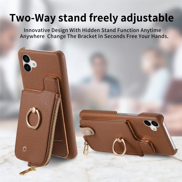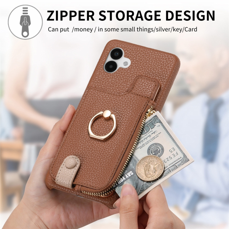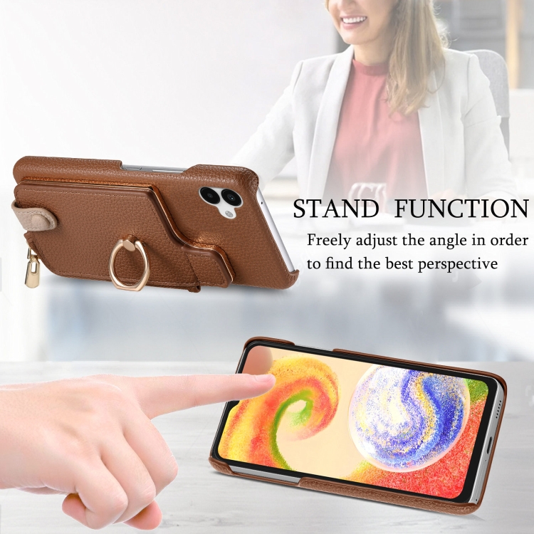 Funda para Teléfono Samsung Galaxy A04 Litchi Leather Oil Edge Ring Zipper Wallet (Marrón)