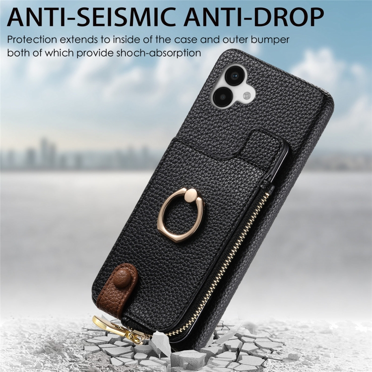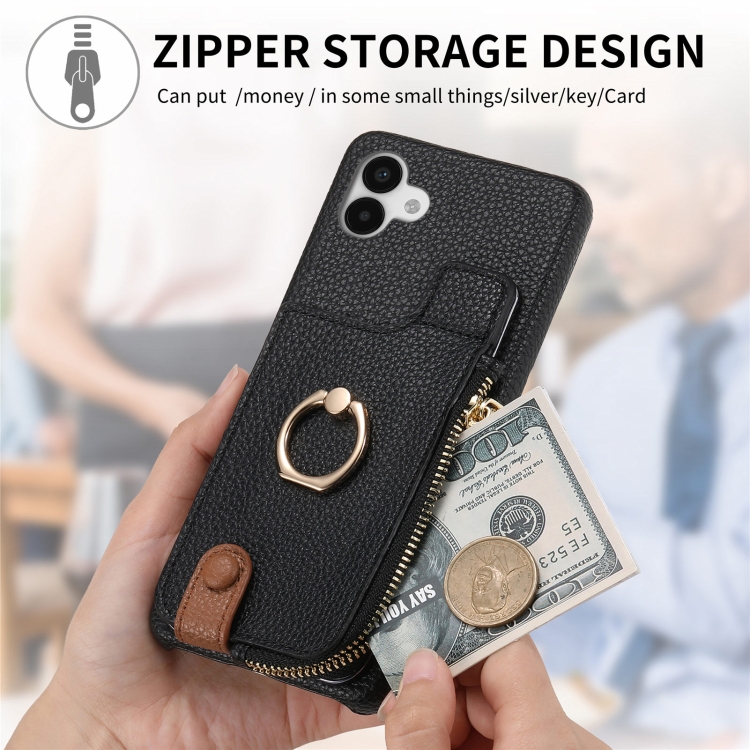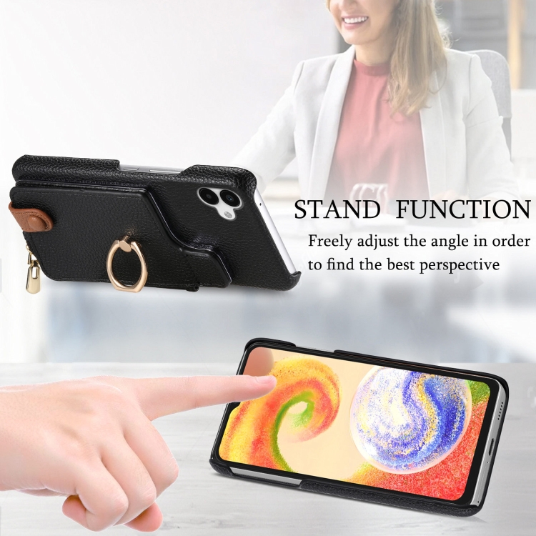 Funda para Teléfono Samsung Galaxy A04 Litchi Leather Oil Edge Ring Zipper Wallet Back (Negro)