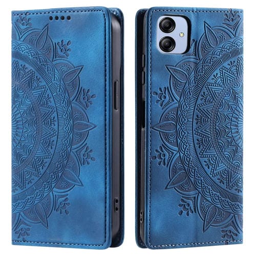Estuche para Teléfono Samsung Galaxy A04E 4G / F04 / M04 Cuero Magnético con Relieve de Tótem (Azul)