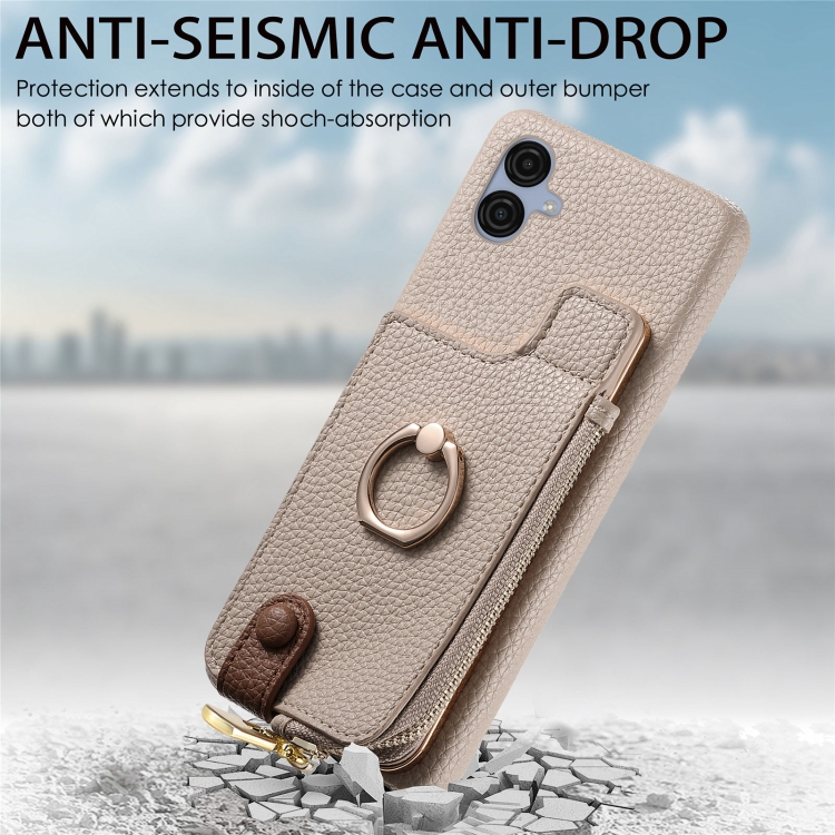 Funda Trasera Samsung Galaxy A04E con Billetera, Cremallera y Anillo de Cuero Litchi (Blanco)