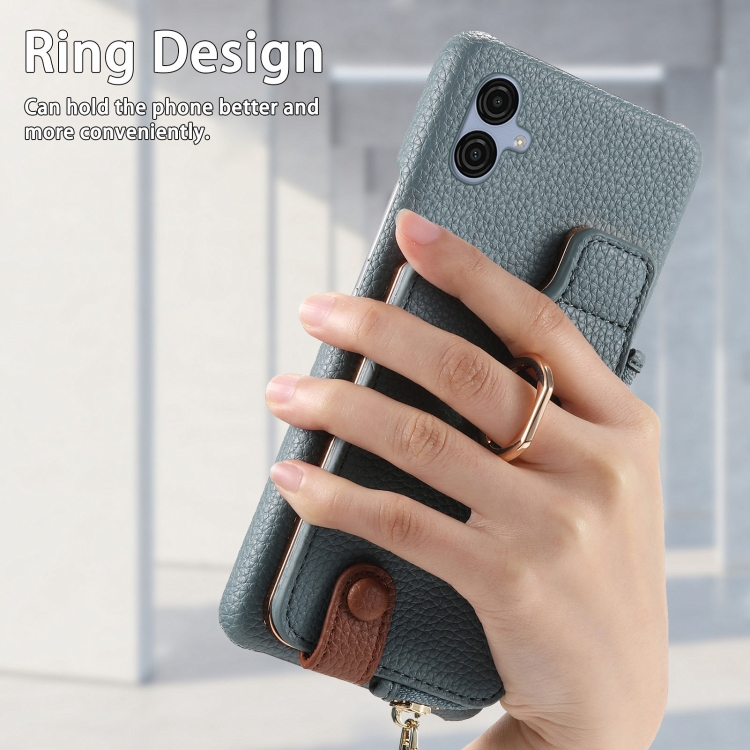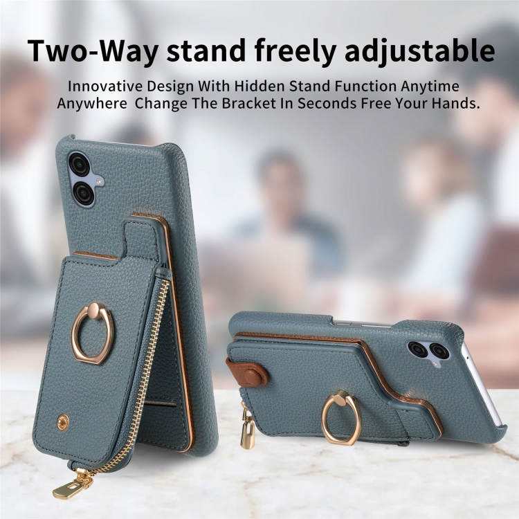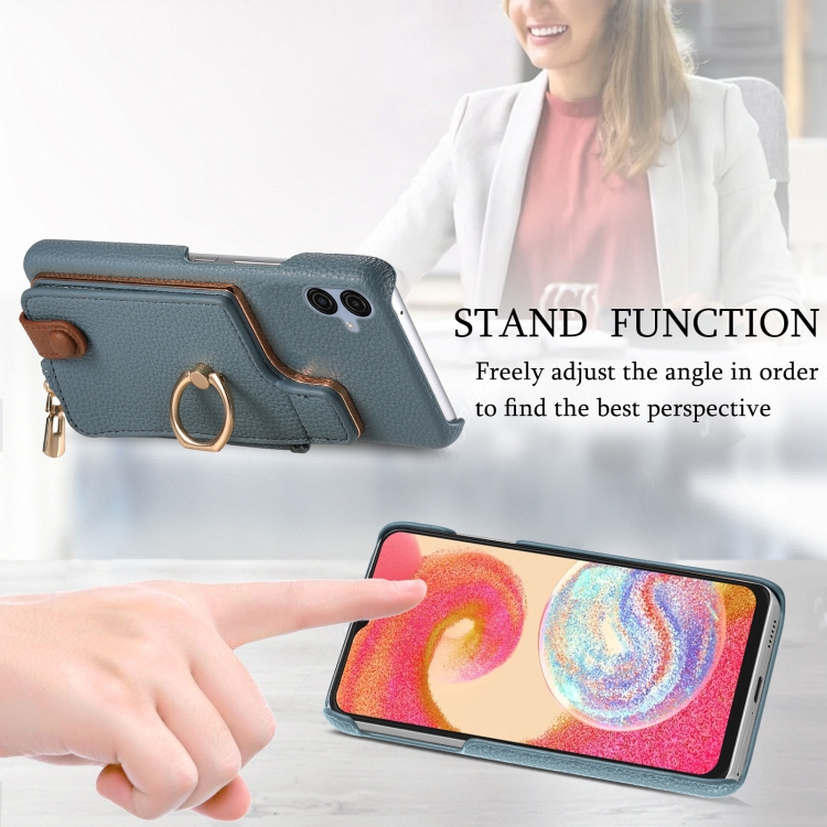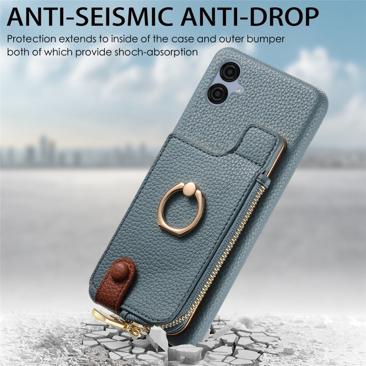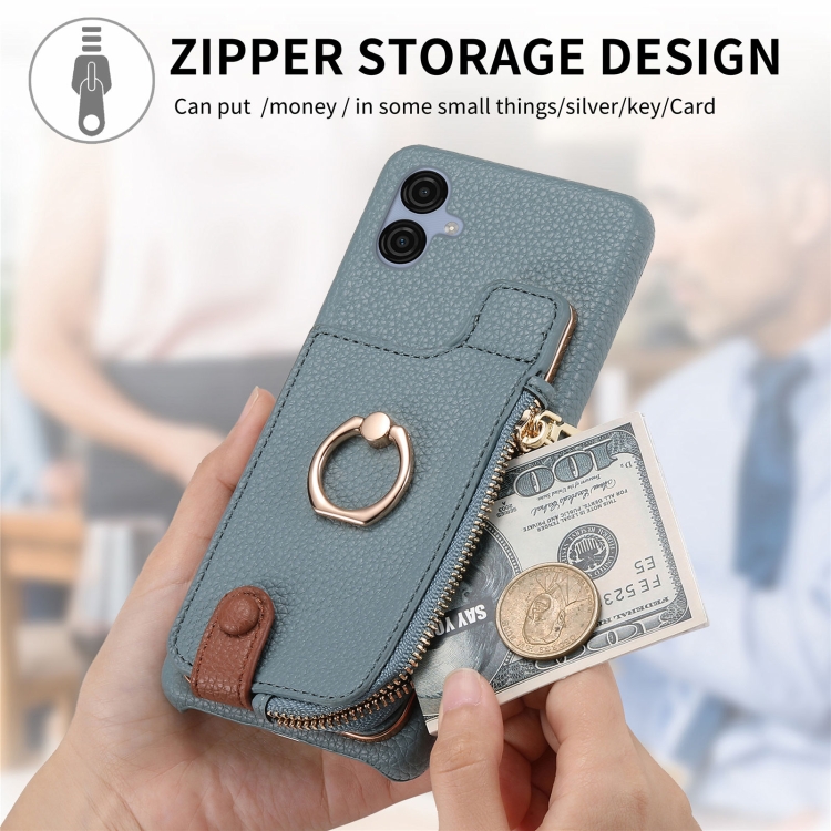 Funda para Teléfono Samsung Galaxy A04E Litchi Leather Oil Edge Ring Zipper Wallet (Azul)