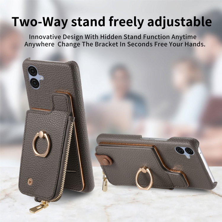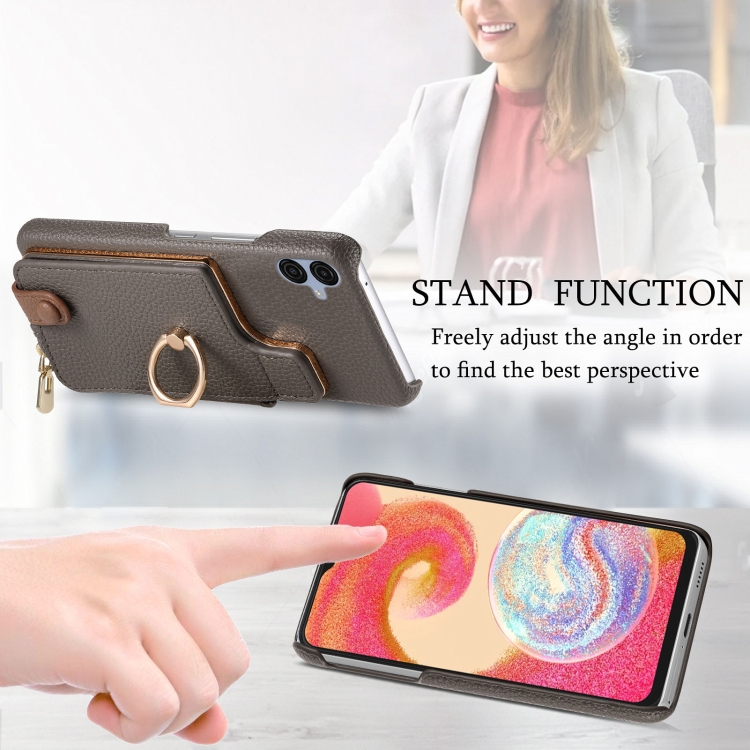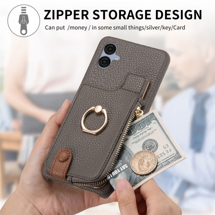 Funda para Teléfono Samsung Galaxy A04E Litchi Leather Oil Edge Ring Zipper Wallet (Gris)