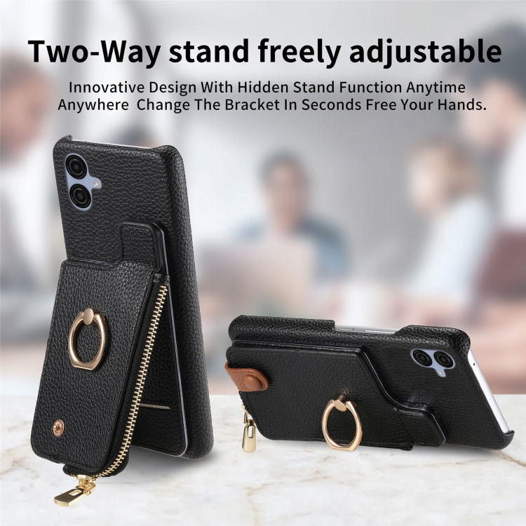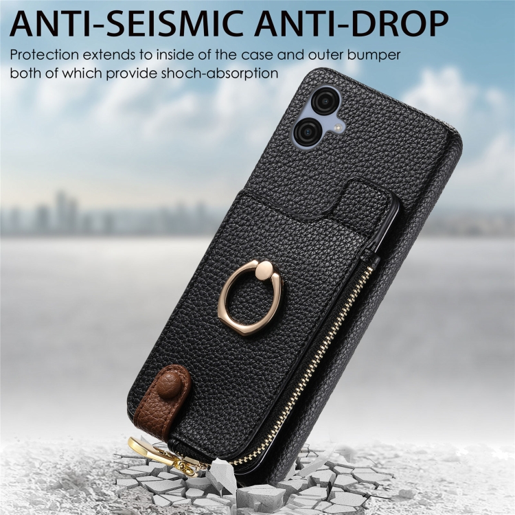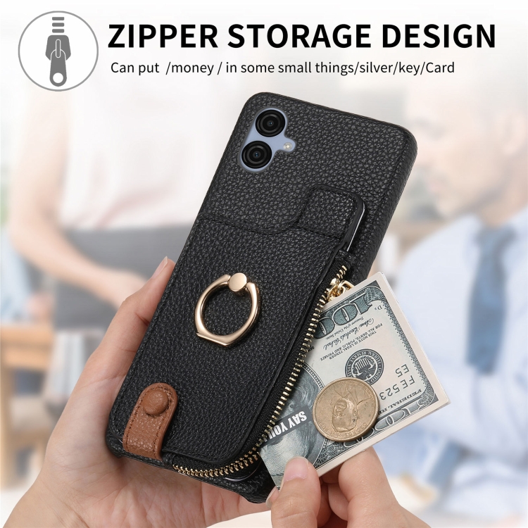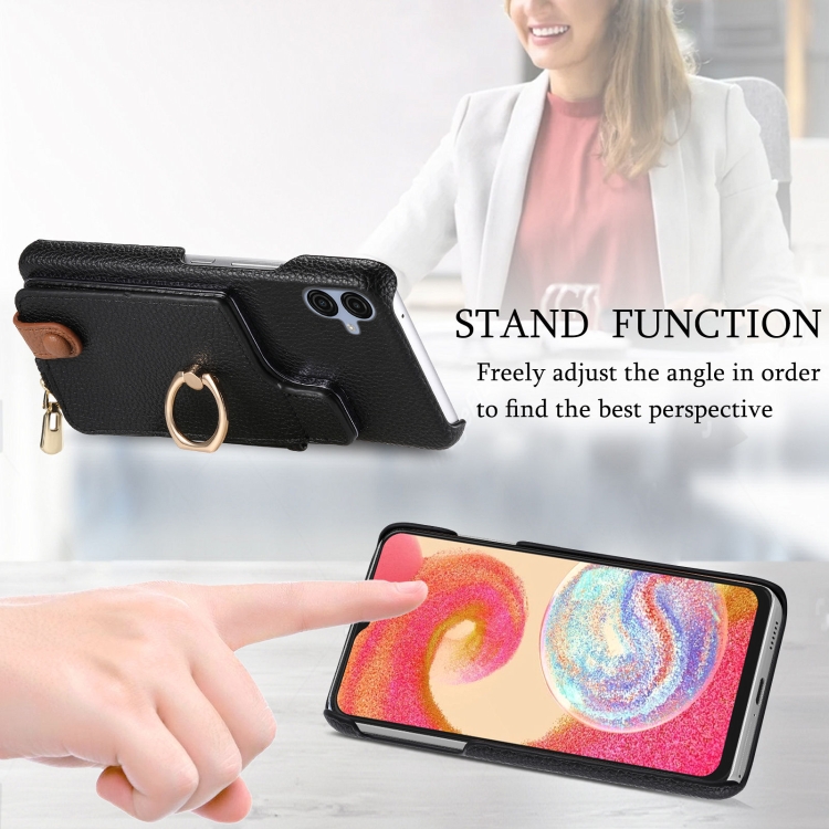 Funda para Teléfono Samsung Galaxy A04E Litchi Leather Oil Edge Ring Zipper Wallet (Negro)