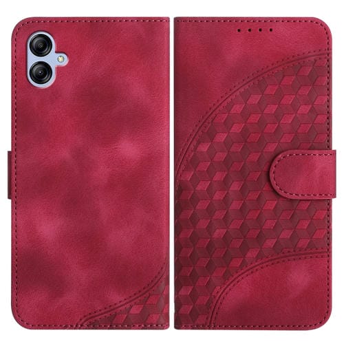 Funda de Cuero Samsung Galaxy A04E Yx0060 con Relieve y Cabeza de Elefante con Cordón (Rojo Rosa)