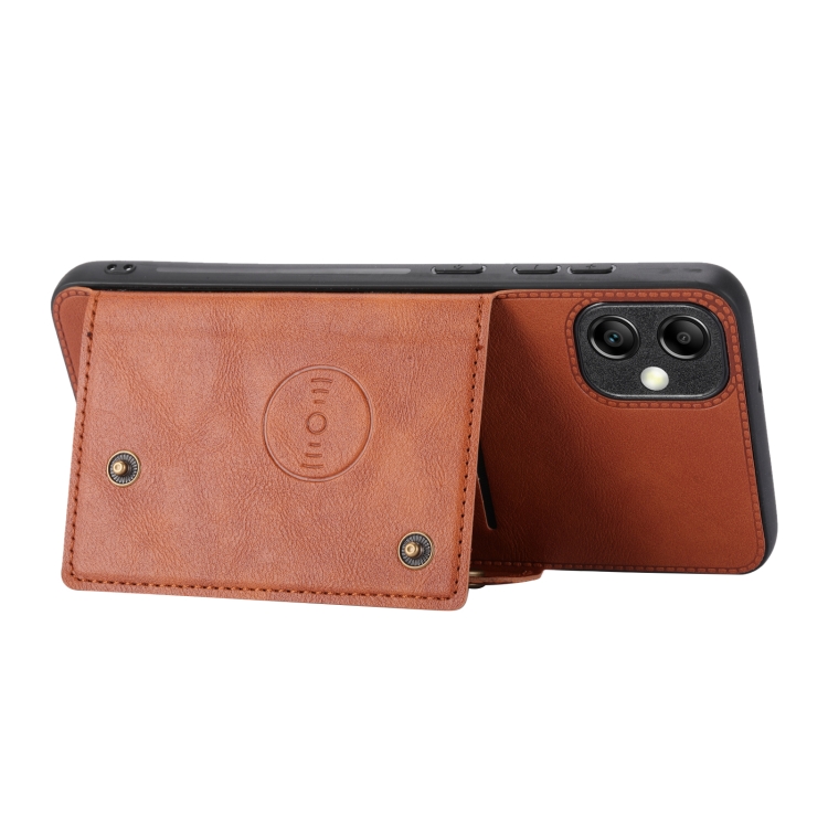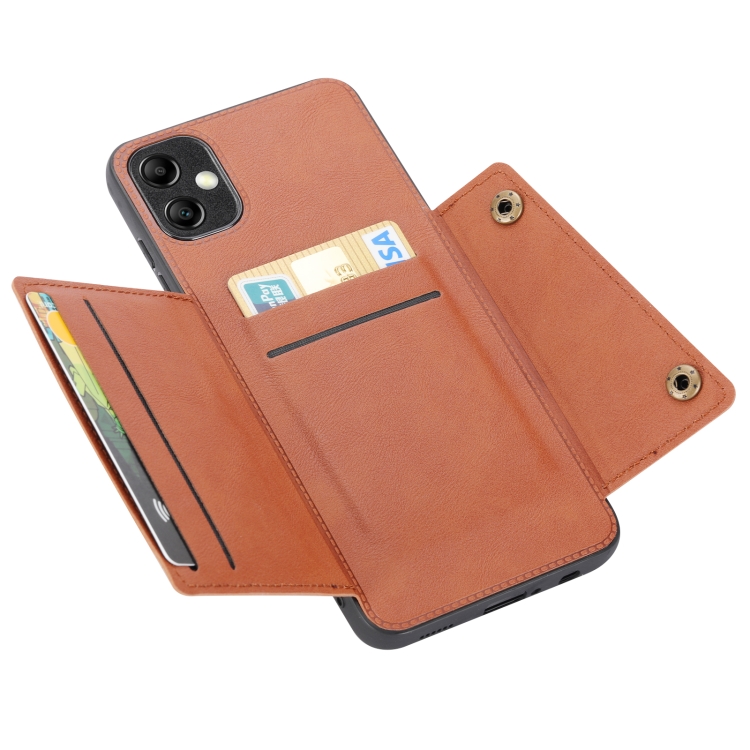Funda para Samsung Galaxy A05 4G Magnética con Ranuras para Tarjetas y Doble Hebilla (Marrón)
