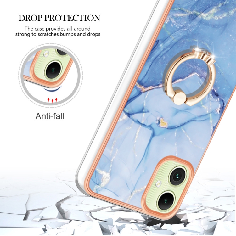Estuche para teléfono Samsung Galaxy A05 Imd doble cara Mármol Galvanizado con anillo (Azul)