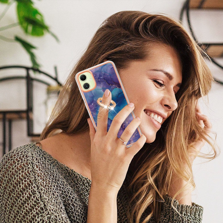 Estuche para Teléfono Samsung Galaxy A05 Imd Doble Cara Mármol Galvanizado con Anillo (Púrpura)