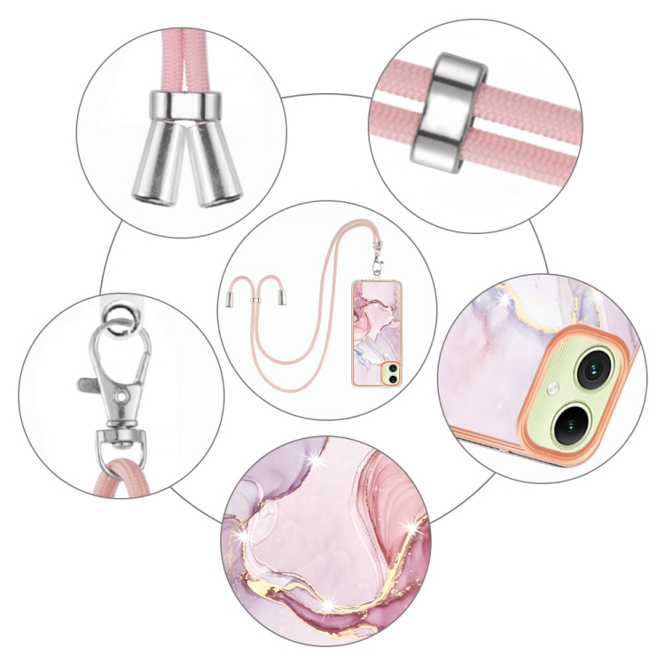 Estuche para Teléfono Samsung Galaxy A05 Imd Doble Cara Mármol Galvanizado con Cordón (Oro Rosa)