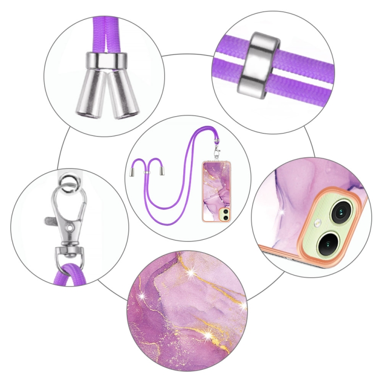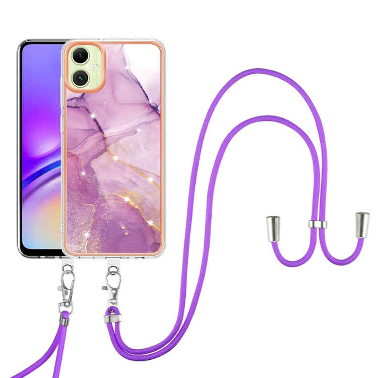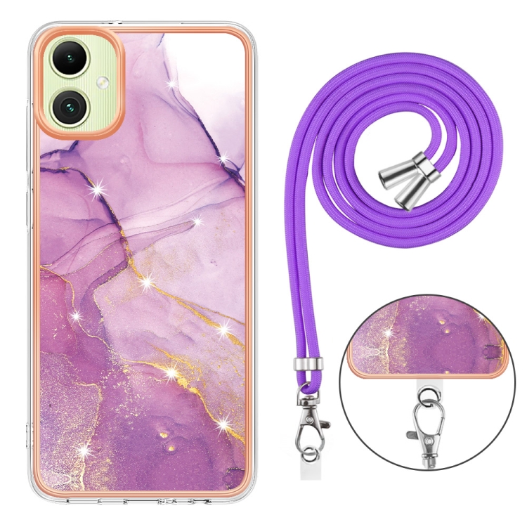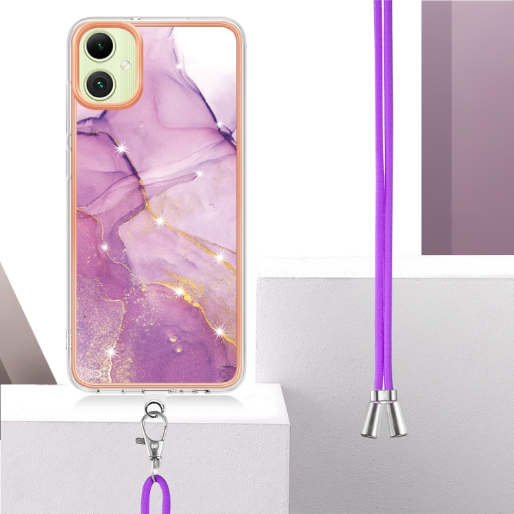 Estuche para Teléfono Samsung Galaxy A05 Imd Doble Cara Mármol Galvanizado con Cordón (Púrpura)