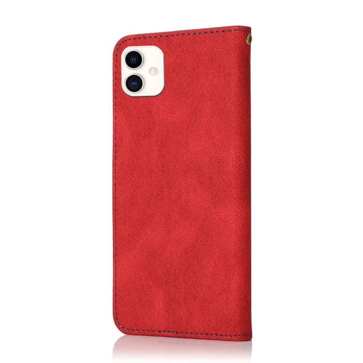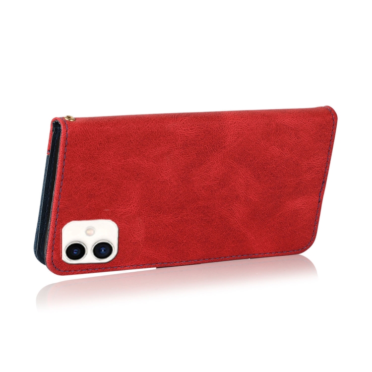 Funda de Cuero Samsung Galaxy A05 con Costuras de Dos Colores (Rojo Azul)