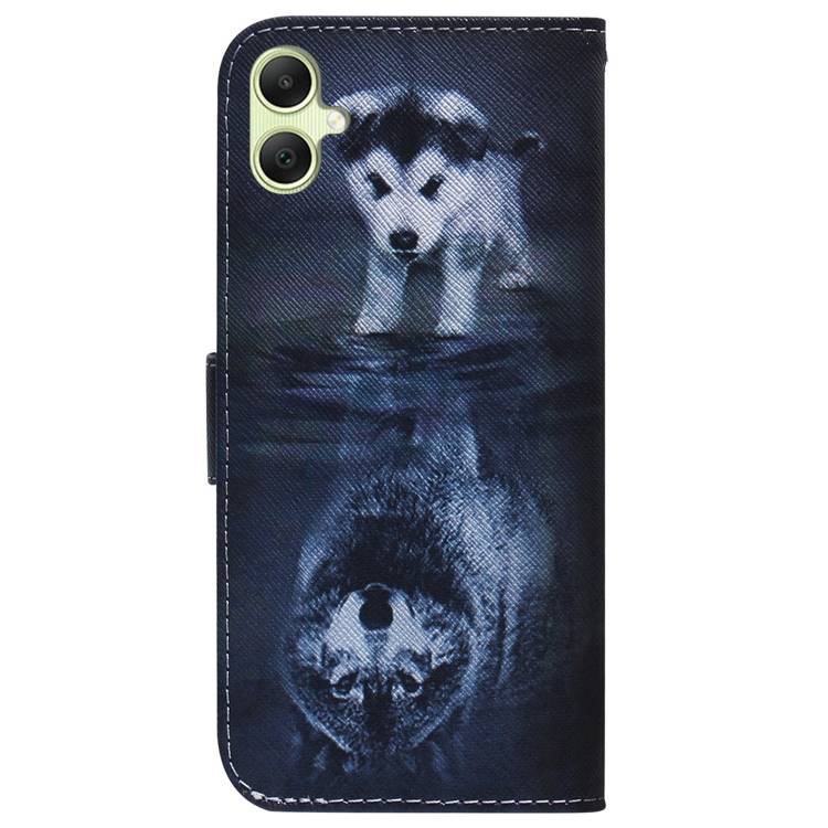 Funda de Cuero con Tapa para Samsung Galaxy A05 con Dibujo Coloreado (Lobo y Perro)