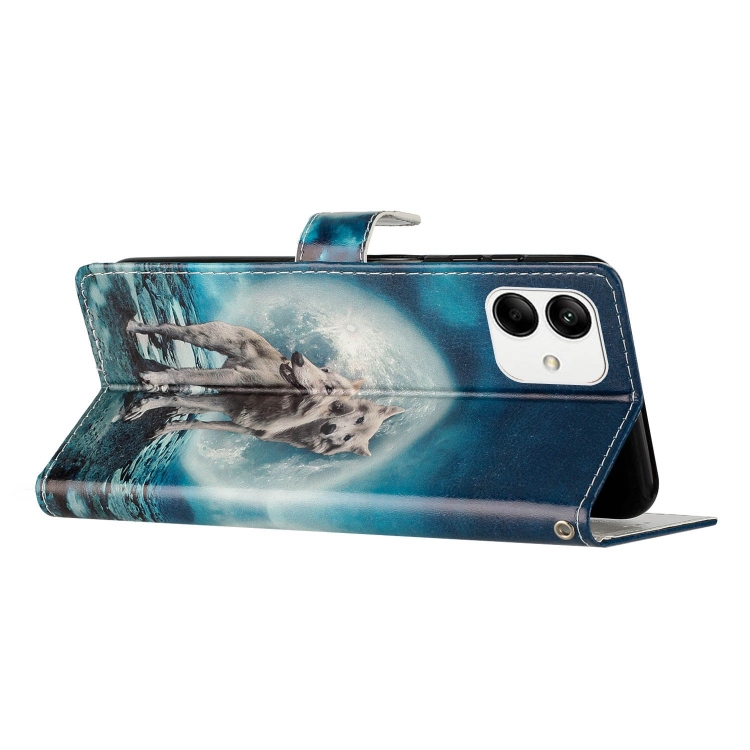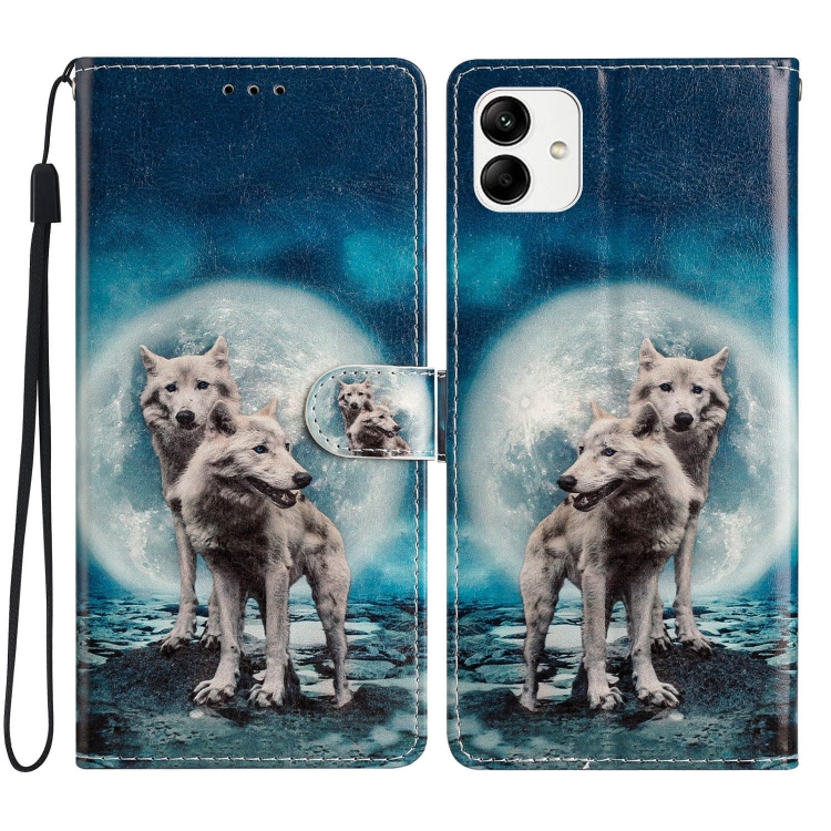 Funda de Cuero Samsung Galaxy A05 con Dibujo de Colores Lobos Gemelos