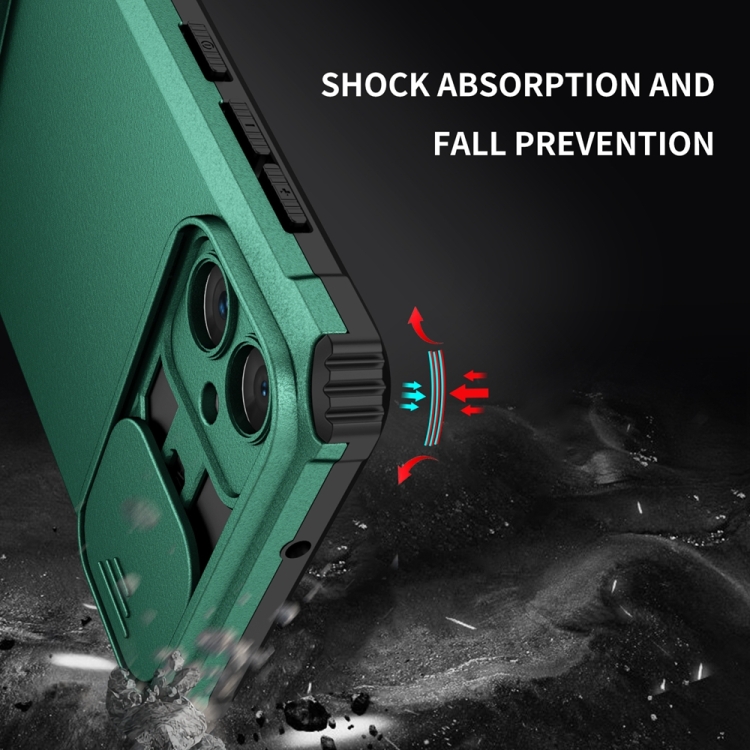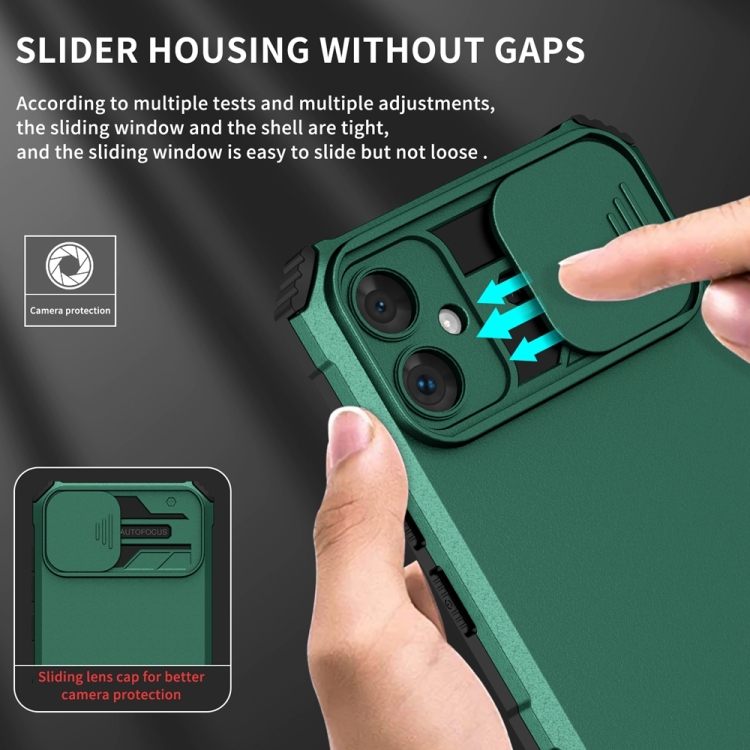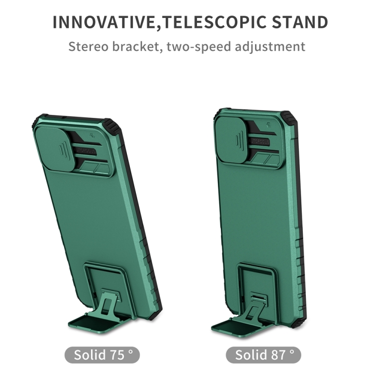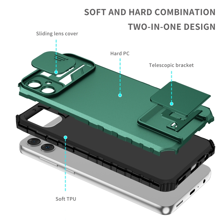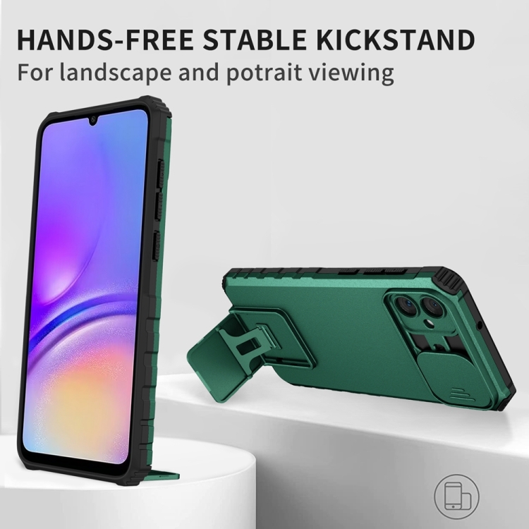 Funda para Teléfono Samsung Galaxy A05 con Soporte Estereoscópico y Escudo de Levas Deslizante (Verde)