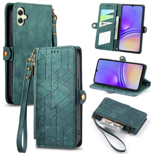 Funda para Teléfono Samsung Galaxy A05 Cuero Hebilla Lateral Billetera Cremallera (Verde)